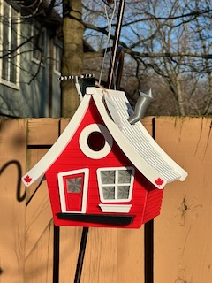 This whimsical and brightly colored birdhouse is an homage to the Canadian Flag